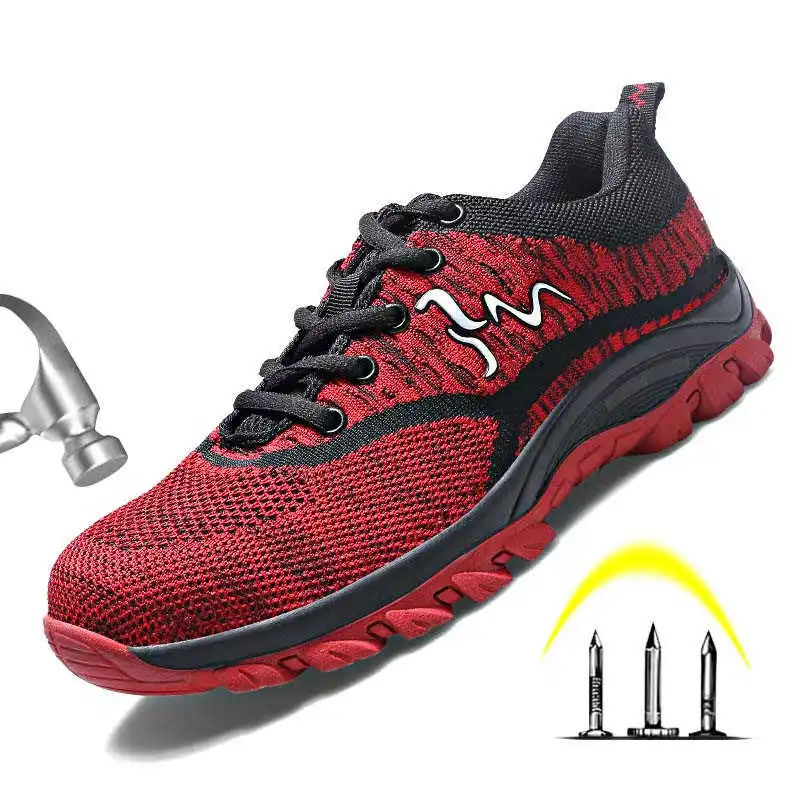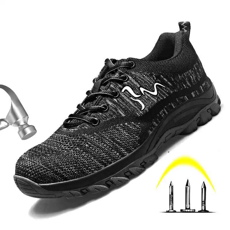 Steel Toe Men Work Safety Shoes Breathable Lightweight Summer Anti-Smashing Piercing Mesh Casual Wo